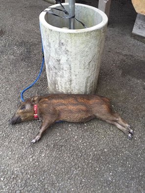 道の駅あらかわでうりぼーのような、いのししが寝てました。